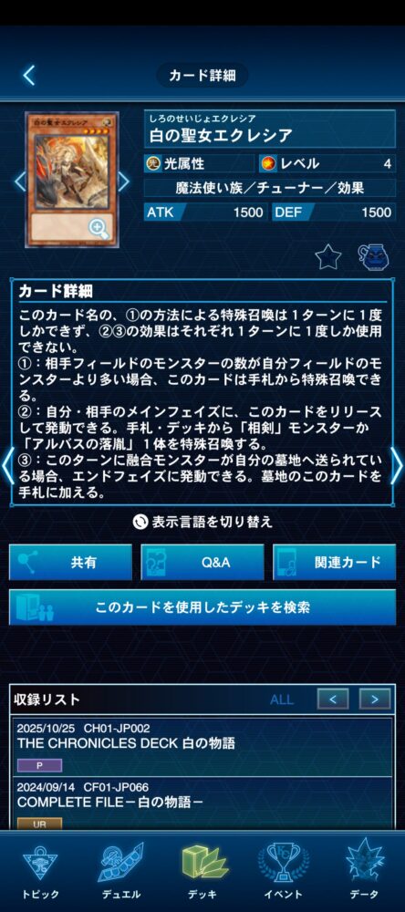 さらに、墓地に『アルバスの落胤』か「エクレシア」が存在する場合には対象のカードを破壊することが可能。