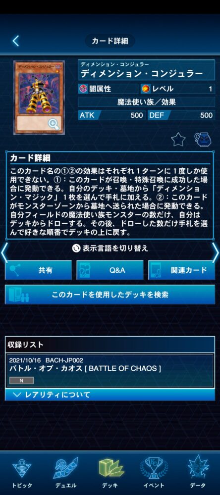 ただ、手札を温存したい「ウィッチクラフト」では、手札消費の荒い『ディメンション・マジック』を採用するのは厳しく感じますね。