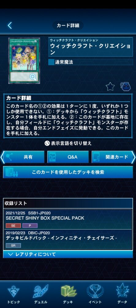 このカード名はルール上「ウィッチクラフト」カードとしても扱う。このカード名の①②の効果はそれぞれ1ターンに1度しか使用できない。