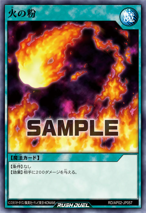 【効果】相手フィールドのカード1枚を選んで破壊する。その後、自分の墓地に「火の粉」と「火の粉のカーテン」がある場合、相手に700ダメージを与える。このターン、自分は「スパークハーツ・パッションガール」の効果を発動できない。