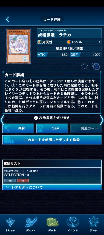 ②:このカードが召喚・特殊召喚した場合に発動できる。デッキから「妖精伝姫」魔法・罠カードか「妖精の伝姫」1枚を手札に加える。