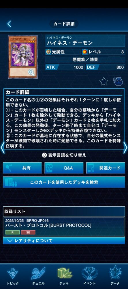 どちらも非常に強力な効果ですし、1つ目に関しては『デーモンの諧謔』を即時発動できる点から実質的な初動札となっている点も素晴らしいですね!!