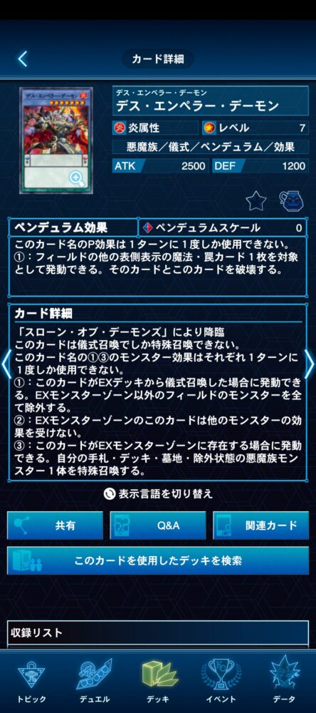 同じ儀式ペンデュラムモンスターである『デス・エンペラー・デーモン』の対としてデザインされたのは間違いないでしょう。