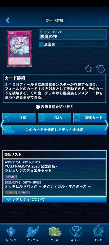『悪魔の技』を即時発動できますし、悪魔族メインのデッキに出張採用しても良さそうですね。