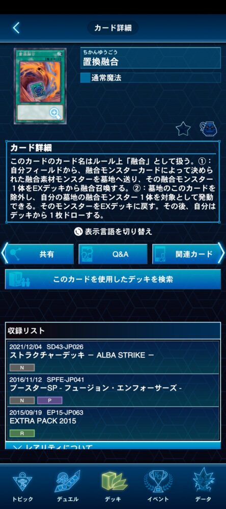アニメ版のドロー効果に加えて、自己特殊召喚と元祖『融合』のサーチ効果が追加されており、大変ありがたい調整だ……。