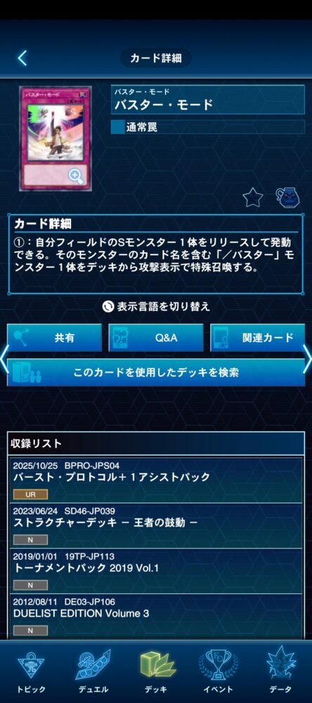 ②:このカードが召喚・特殊召喚した場合に発動できる。デッキから「シンクロン」モンスター1体か「バスター・モード」1枚を手札に加える。