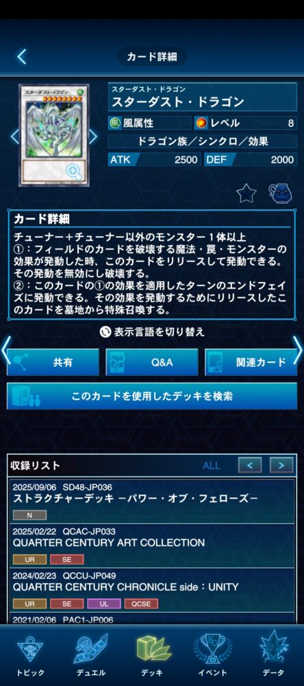●自分フィールドのモンスター1体をリリースして発動できる。そのモンスターを除く、「ジャンク・ウォリアー」「スターダスト・ドラゴン」またはそのいずれかのカード名が記されたモンスター1体を自分の手札・デッキ・墓地から特殊召喚する。