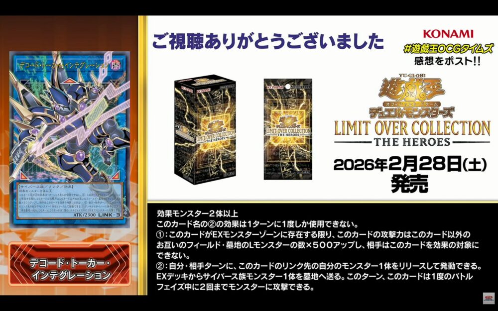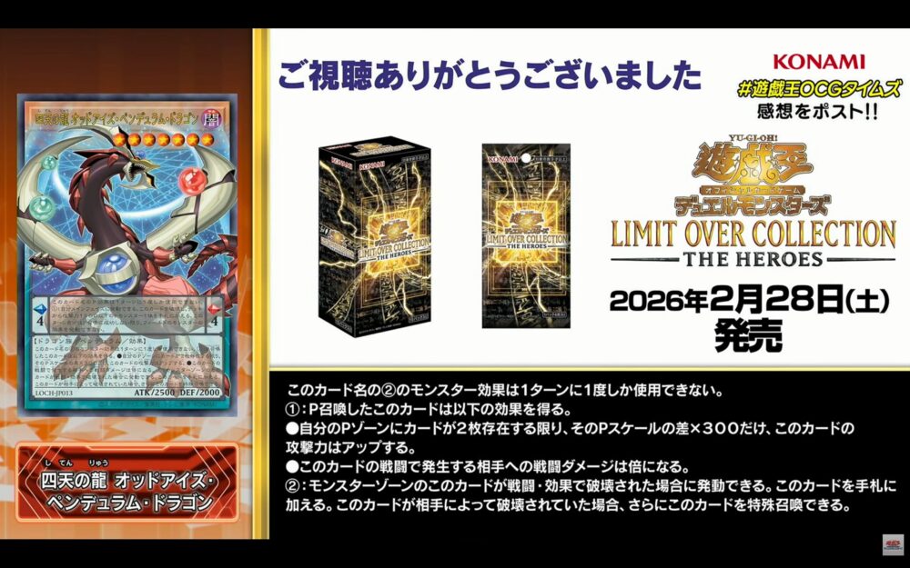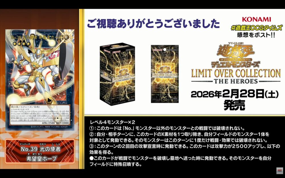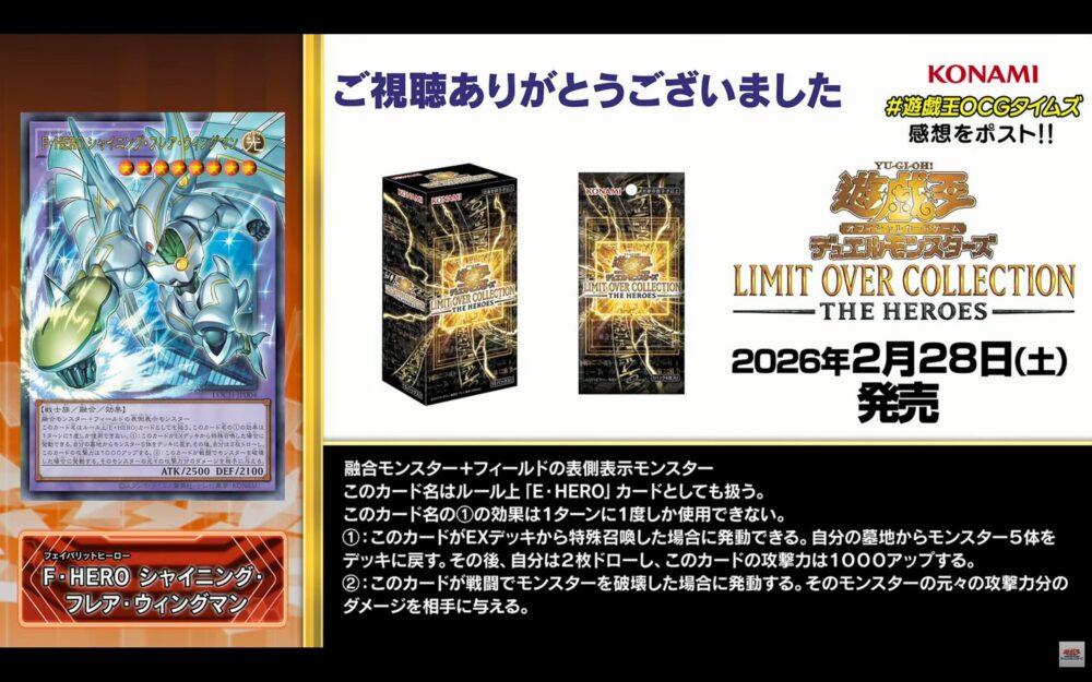 2026/2/28に発売される遊戯王OCGのスペシャルパック「リミットオーバーコレクション-THE HEROES-(LIMIT OVER COLLECTION)」に収録される、リメイクカード6種が公開されました。