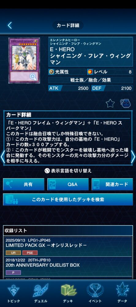 そして、『超融合』との相性に優れ、ドロー効果と「フェイバリット」の名を携えた『E・HERO シャイニング・フレア・ウィングマン』、