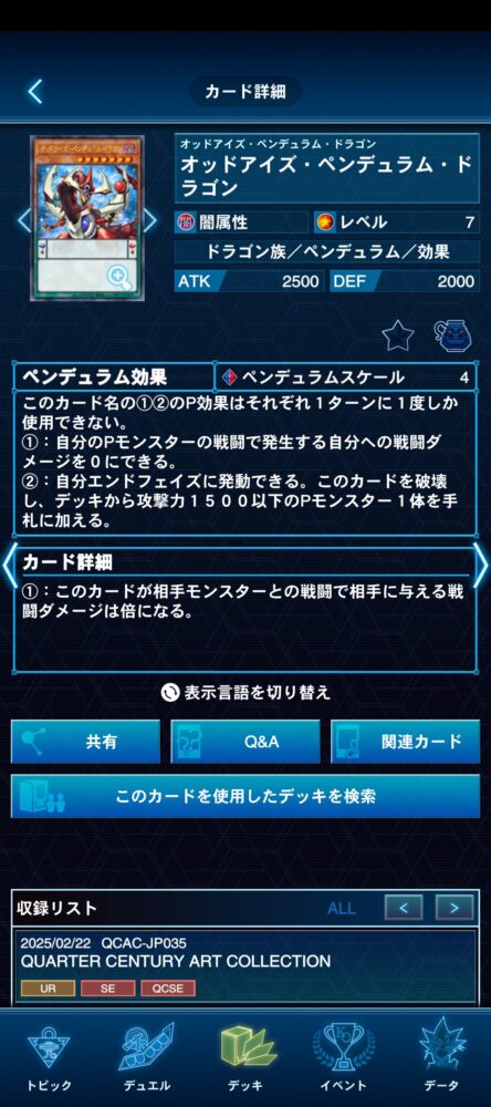 レベル7/闇属性/ドラゴン族/ペンデュラム/効果モンスター/攻2500/守2000