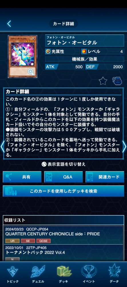 ①のリクルート効果も、戦線強化や②のコストとするためのエクシーズモンスターの素材、『フォトン・オービタル』を経由したサーチなど、使い所は多いでしょう。