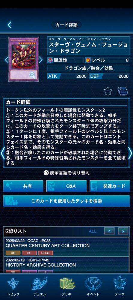 ただ、どうせならアニメ版の『スターヴ・ヴェノム・フュージョン・ドラゴン』の様に手札融合できる調整で実装されて欲しかった……。